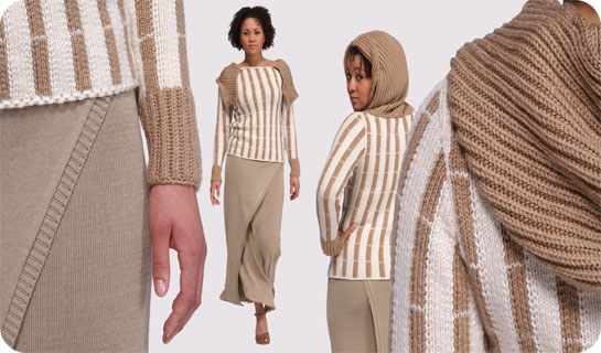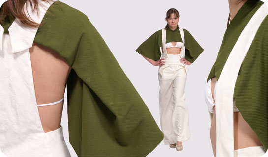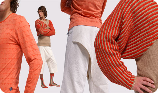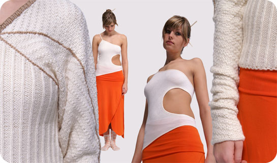 Meine Diplomarbeit war das Kreieren eines neuen Modelabels mit einer geschlossenen Welt... Die Mode war ausschließlich aus Bambus. Sowohl die Pullover, als auch der Rest der 11 Outfits sind selbst genäht worden.