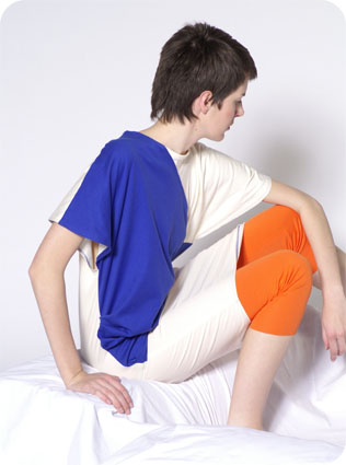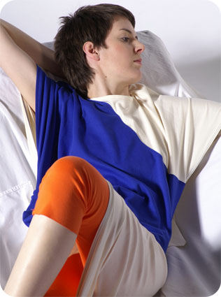 Im 5. Semester arbeitete ich mit einer Homefashion-Firma zusammen. Die Aufgabe war, eine Beispielkollektion für das Jahr 2010 zu erarbeiten. Ich entwarf eine Kollektion mit ausgerüsteten, funktionellen Garnen. Mit Inhaltsstoffen wie Menthol, Vitamin E oder Chitosan. Es entstand eine Kollektion aus 30 Outfits, wobei 2 von mir realisiert wurden. |